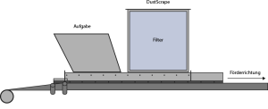 Die Rechnung ist einfach: Durch die Investition in eine ScrapeTec Staubschutzlösung rund um den DustScrape an den Übergaben einer Förderanlage können die kompletten Energiekosten einer Staubabsaugung eingespart werden – sind dann also bei Null. Denn diese kann beim Einsatz vom Filter-Modul DustScrape und den innovativen Dichtungslösungen AirScrape und TailScrape abgeschaltet werden. Die Dichtungen arbeiten kontaktfrei, mit speziellen Profilen und erzeugen somit den Venturi-Effekt: Die Luft wird nach innen angesaugt. Staub entweicht nicht und das Schüttgut bleibt ebenfalls auf dem Band. Der DustScrape mit seinem speziellen und robusten Filtertuch nimmt den Staub auf, der durch die Fallenergie vor Übergabe/ Aufgabe in Bandlaufrichtung entsteht.