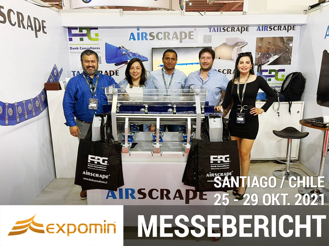 ScrapeTec Partner Dank Consultores präsentiert auf der Expomin, der wichtigsten Messe für Mining in Chile in der Halle 2, Stand J-56 zwischen dem 25. – 29.10.2021 den AirScrape und weitere ScrapeTec Innovationen für staubfrei arbeitende Übergabestellen an Förderbändern.