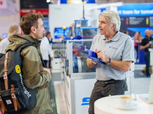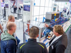 Mit der sensorischen Ausstattung und der Monitoring-Tauglichkeit bedient ScrapeTec genau diese Wandlung, die auch im Bereich der Förderanlagen für Schüttgut spürbar wird. Auch wenn die ScrapeTec Trading GmbH auf der bauma Teil eines Gemeinschaftsstandes für die Bergbau-Kompetenz des Landes Nordrhein-Westfalen war, so werden die Vorteile der Lösungen für den Staubschutz doch Branchen übergreifend erkannt. Sie betreffen Förderanlagen für jedwedes Material. Und mit dem vorgestellten E-PrimeTracker hat das Unternehmen um Entwickler Wilfried Dünnwald wieder mal seine Innovationskraft bewiesen. Auch für die Zukunft. Denn die zum E-PrimeTracker gehörige App, um ein mobiles Monitoring zu erlauben, wurde auf der bauma als Prototyp in der Anwendung an der Beispiel-Anlage des Standes vorgestellt. Die endgültige Markteinführung soll alsbald folgen. Die Nachfrage ist groß, das zeigte auch die große Anzahl an Besuchern des Standes von ScrapeTec.