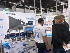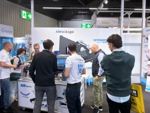 From the moment you step up to the ScrapeTec booth, it’s obvious: this isn’t just about showcasing products, but about sparking real dialogue. “What’s driving the industry right now?” sales manager Thorsten Koth asks with a wink—and follows up with his own answer: “More process safety and less dust. Our customers want solutions that actually work.” With AirScrape, DustScrape, and the brand new E PrimeTracker sensor roller, ScrapeTec hits the mark.