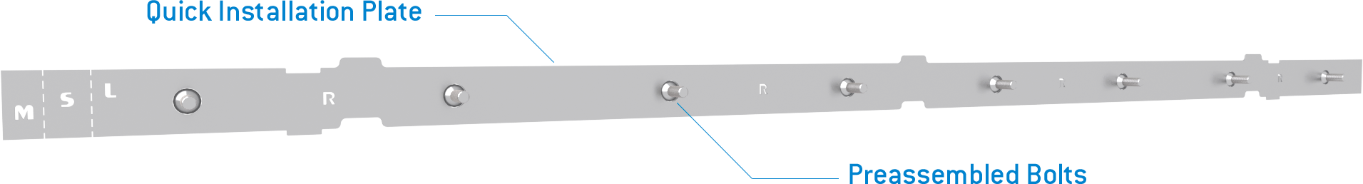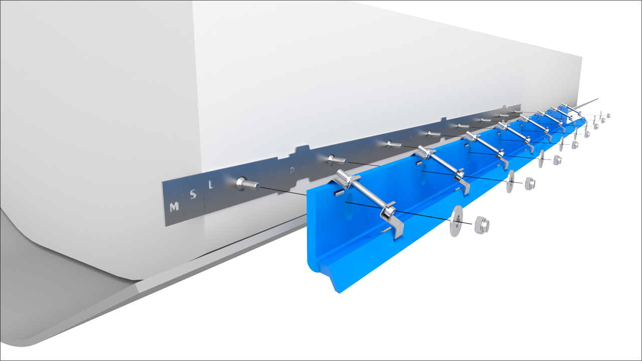 The correct positioning and alignment of the AirScrape are crucial for its efficient operation. The new assembly help integrates the mounting screws into a welding plate, which only needs to be adjusted and fixed by welding once per length unit. The labor-intensive process of welding individual bolt pins is eliminated. The welding plate is suitable for all three AirScrape sizes: Large, Medium, and Small, and can be adjusted accordingly.