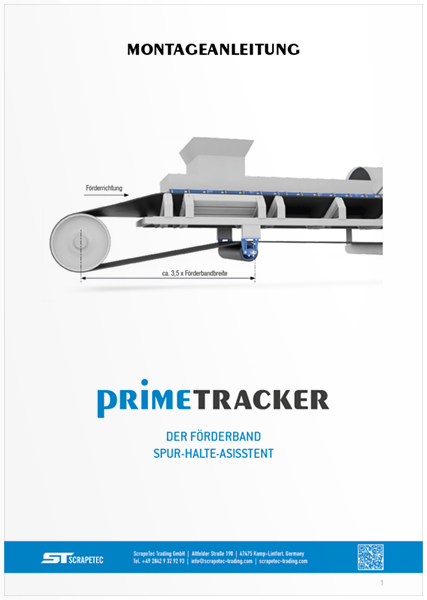 Der PrimeTracker wird in einem Abstand von 3,5 x Gurtbreite vor der Kehrtrommel mit geringem Druck montiert. Er kann wahlweise über oder unter den Gurt eingebaut werden. Bevorzugt wird der PrimeTracker auf der sauberen Fördergurtlaufseite eingebaut. Er ist für Gurtbreiten von 500 bis 2000 mm erhältlich.