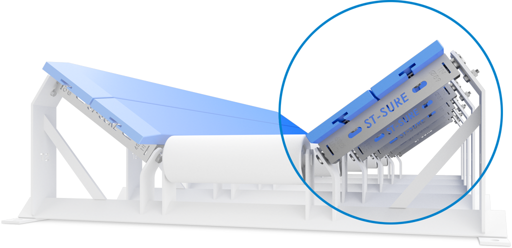 Der SureSupport verhindert, dass fallendes Material den Gurt verformt und die Gurtbelastung erhöht. Es bietet dem Gurt Halt und Führung und unterstützt so die Arbeit der AirScrape Seitenabdichtung. Gemeinsam mit dem SureSupport eingesetzt kann der AirScrape optimal im Bereich der Materialübergabe arbeiten. Staub und Verschüttung haben keine Chance.